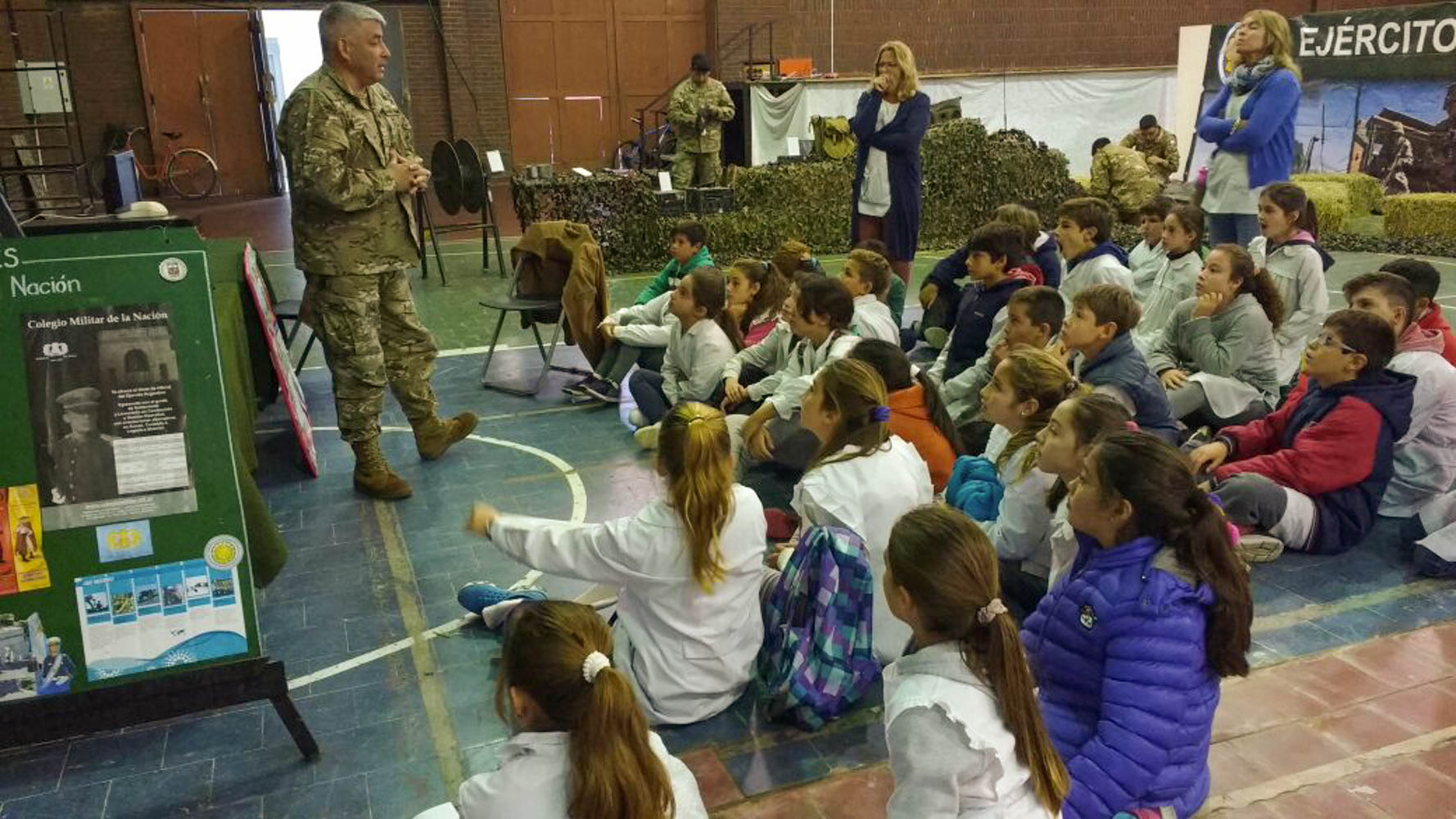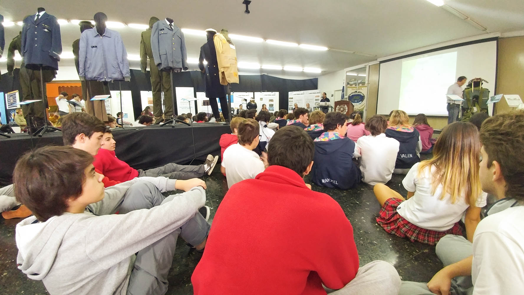 HM: a partir de todo lo que se hizo con la secretaría de extensión, nos empezaron a conocer. “Este es Veterano, este es Veterano”. Empezó SAFA, empezó San José, Colegio de la Sierra, los colegios primarios. Y empezó a moverse todo. Después vino el IPAT y empezaron las conexiones. Pero todo nació prácticamente gracias a que la universidad dijo “bueno, vamos a hacer una exposición relacionada a Malvinas, en el Salón de los Espejos”. Listo, ahí estuvimos. Y ahí la gente empezó a meterse.