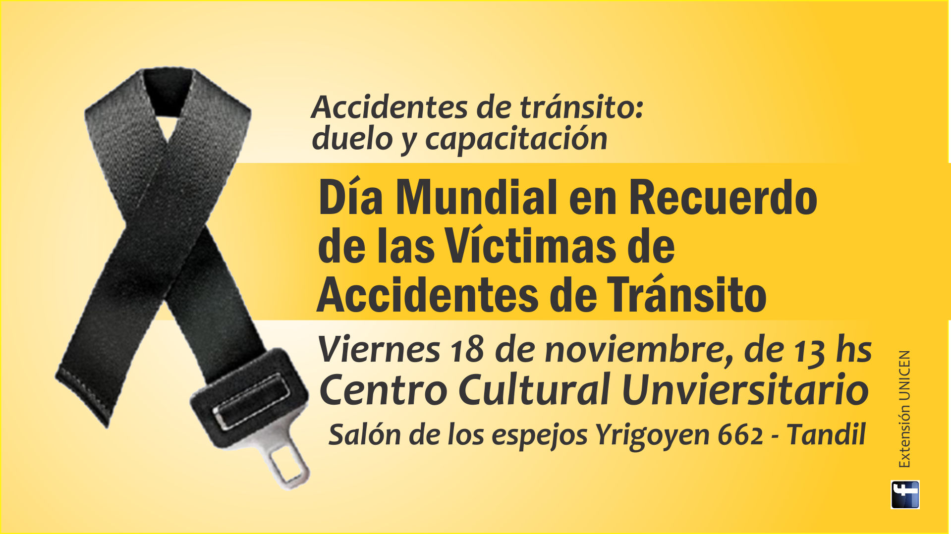 En el Día Mundial en Recuerdo de las Víctimas de Accidentes de Tránsito, la Ong Tránsito entre Todos y la Secretaría de Extensión de la Universidad Nacional del Centro organizan una jornada de duelo y capacitación, con la participación de Cruz Roja filial Tandil, la Asociación de Abogados de Tandil, la agrupación Motosierras Tandil, la agrupación Estrellas Amarillas Tandil, Comisión de Discapacidad de UNICEN y Defensa Civil de la Municipalidad de Tandil.-