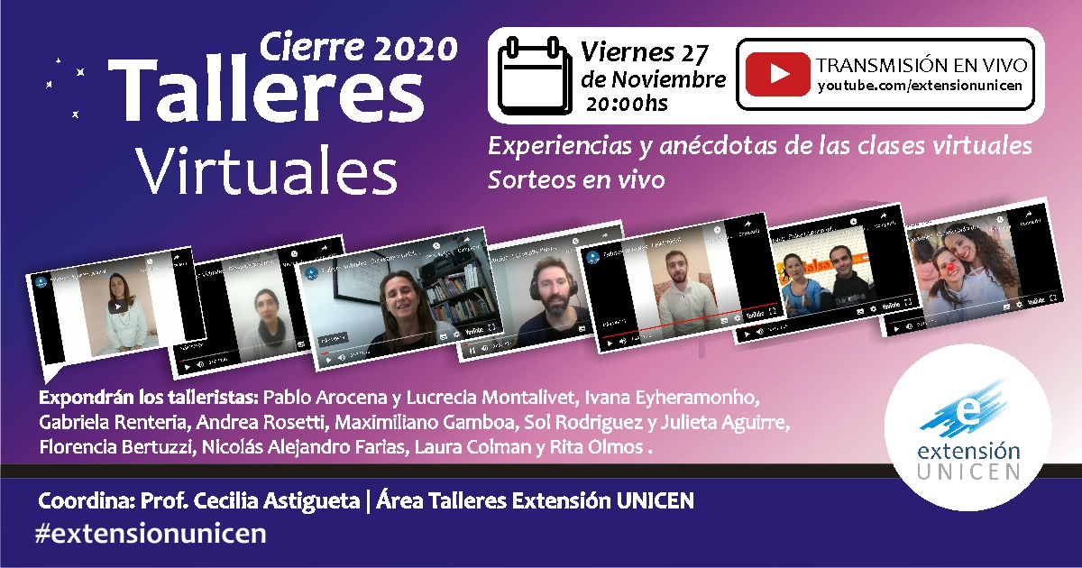 La Secretaría de Extensión de la Universidad Nacional del Centro de la Provincia de Buenos Aires, invita a la comunidad al acto de cierre de los Talleres Virtuales correspondientes a los tres ciclos que se desarrollaron durante el corriente año.