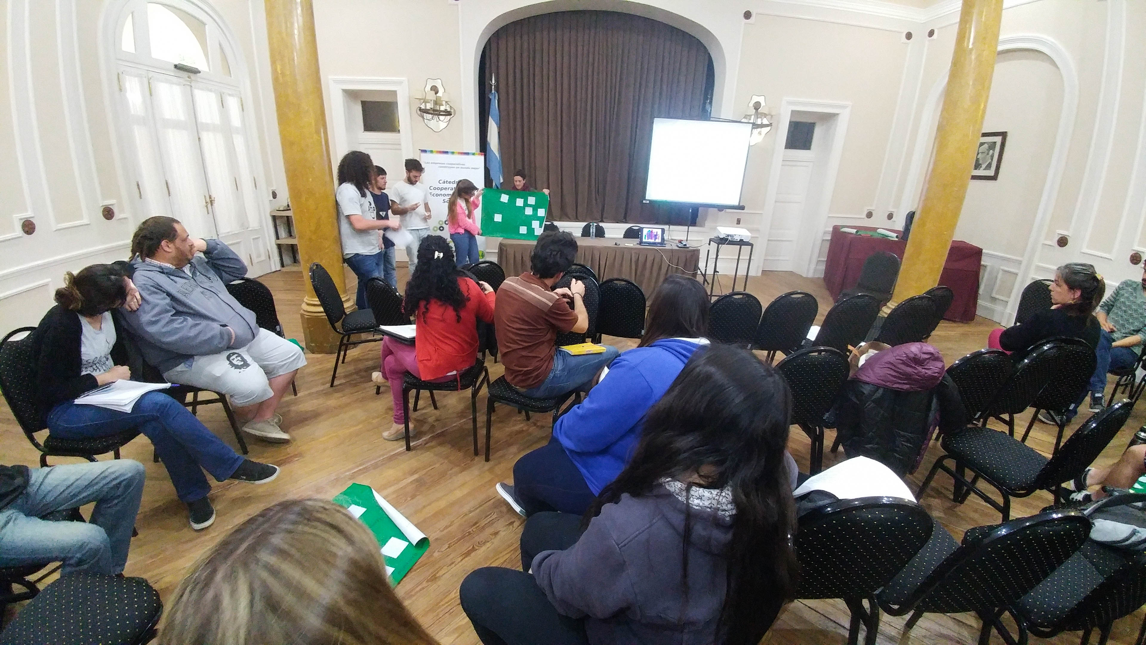 En la misma, un grupo conformado por estudiantes y graduados de las distintas Facultades de la Sede Tandil de la UNICEN, docentes secundarios, jóvenes cooperativistas y público en general interesado en la temática, comenzaron a reflexionar acerca del cooperativismo y la economía social. Durante la primera clase se reflexiono acerca de la historia de la universidad y sus diferentes concepciones, la evolución de sus distintas funciones a través del tiempo, el rol de la Universidad Pública en la sociedad, la necesidad de la formación integral de los y las estudiantes y sus posibilidades de desarrollo profesional en el compromiso ético con la sociedad.