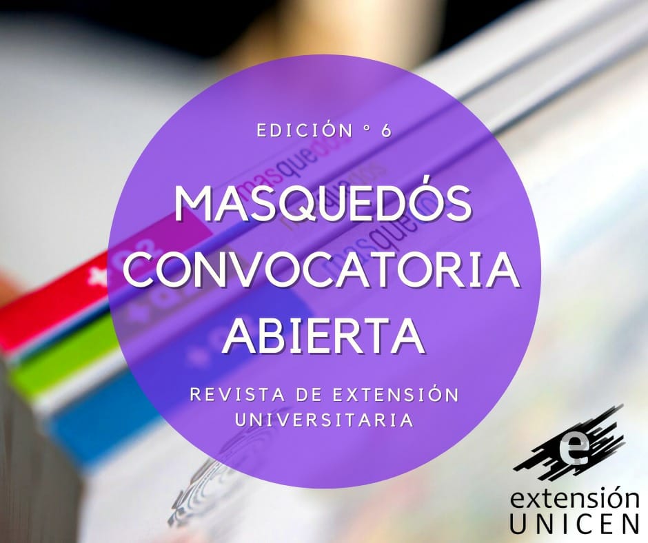 Masquedós, la Revista de Extensión de la Universidad Nacional del Centro de la Provincia de Buenos Aires, anuncia que la recepción de artículos académicos permanecerá abierta durante todo el año. En esta oportunidad para escribir en la edición número 6.
