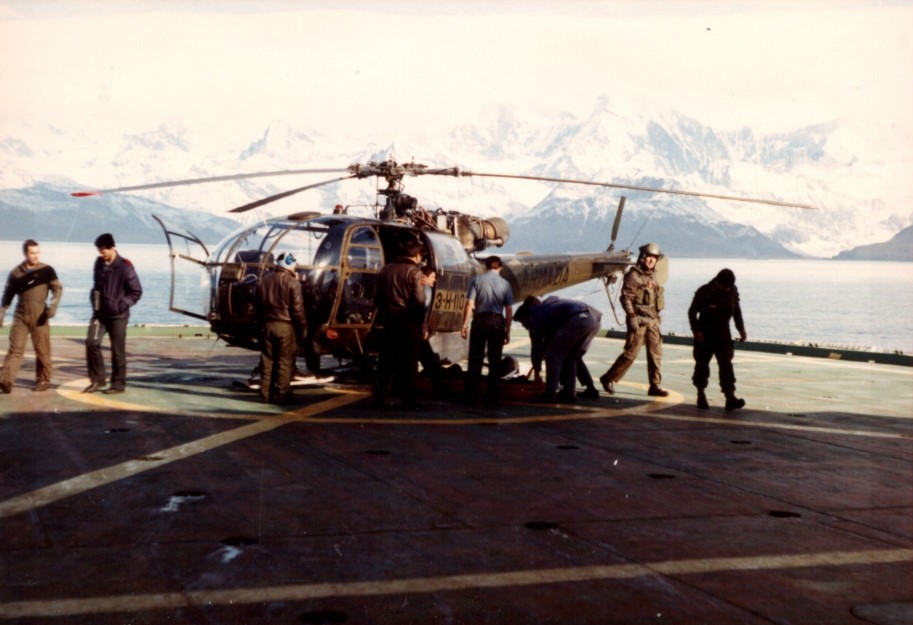 De todas maneras te cuento esto: a todos los heridos los transportan al Bahia Paraíso. A los más graves que eran Monzón –este chico que estaba en la torre- y Pingitore –que era un oficial al que le habían pegado y sacado un ojo- los va a buscar un helicóptero de tierra. A los demás tardan como 10 u 11 días en llevarlos de vuelta. Y al cirujano del Bahía Paraíso, lo habían dejado en tierra! Y arriba quedó el odontólogo y el enfermero. Asique los dos muchachos decían “nos estamos pudriendo!”, y después le hicieron un reclamo legal a la Armada. Si se hubieran quedado en la unidad donde estábamos nosotros, nosotros en 4 días volvimos a puerto a reparaciones.