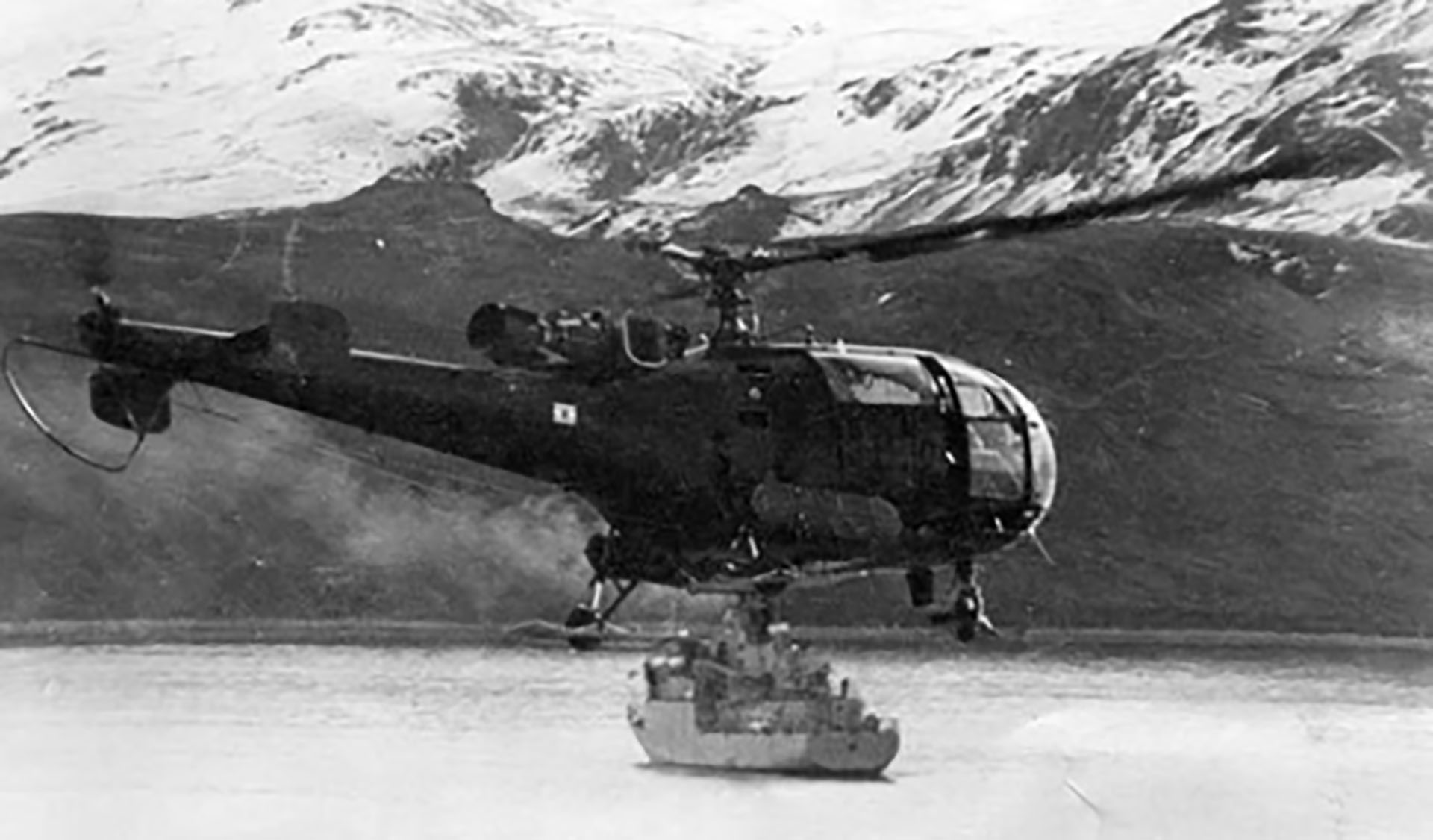 Bueno, cuando viene el segundo helicóptero, hace una mala maniobra el helicóptero en realidad, porque va por adelante y se va para arriba de donde estaban los ingleses. Y ahí le tiraron. Ahí mueren Aguila y Almonacid y uno o dos más quedan heridos. Ese helicóptero con suerte, alcanza a llegar del otro lado de la Bahía y cae justo sobre tierra. Y ahí el resto que quedó vivo, se salva.