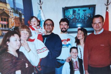 Lo de España fue… Bueno nosotros quedaron allá parte… teníamos familia, unas primas que se habían casado con dos industriales que… económicamente estaban muy bien. Hijas del hermano de mi padre, el sastre, el sastre de la corte. Era renombrado, con tal que decirte cuando yo viajé, todavía está la placa de la sastrería, en Barcelona, en la casa donde él tenía la sastrería. Y estamos hablando de ciento y pico de años atrás. Ellos querían llevar a los tres hermanos que éramos. Uno de mi prima, hija de una prima…una historia media larga. Cuando la guerra, la hija de mi tío, el mayor, era una chica de 16 años, que se había quedado sin familia, a el padre lo habían matado en la guerra, entonces el tío la tenía  en la sastrería, la criaba. Cuando vino la guerra se tuvieron que escapar, porque ahí las violaban a las chicas…era un desastre, era una guerra civil. Entonces se escaparon a Francia. En Francia les dijeron, acá no pueden estar así, no tienen papeles, no tienen nada. Se tuvo que casar con ella y tuvieron cuatro hijas mujeres. Así que era mi tía y mi prima a la vez. Una de esas hijas  se puso en conversación con Mirtha, con quién iba a ser! Como siempre! Y arreglaron ese famoso viaje. El primero que viajó…ya para eso mi hermano más chico no quería… porque había cambiado de religión, se había hecho mormón, prácticamente se había distanciado un poco, no quería saber nada con viajar España. Así que bueno…mi hermano más grande viajó con una nieta, estuvieron tres semanas allá. Un año antes que nos fuéramos nosotros. Y después bueno, hablando con Mirtha… – Queda pendiente la oferta, les mando dos pasajes para tí y tu padre. Tú como estás casada puedes venir con tu marido, ocúpense ustedes, la estadía…acá no se hagan cargo… Para eso Mirtha, tenía una amiga, no sé si les contó la historia. Tenía una amiga de la secundaria, que estaba en Italia. Así que estuvimos en Barcelona, en Italia y en Mallorca. Tenía una amiga de la primaria, de Buenos Aires,  que habían ido al mismo colegio en Ramos Mejía. Y cuando se enteraron que iban a ir a España y me llevaba, le habló. Tanto la amiga que estaba en Italia, como la que estaba en Mallorca le dijeron… Vengan acá, la de Mallorca, le decía…que yo tengo una casa grande. Fue un viaje de maravilla!! De maravilla!!