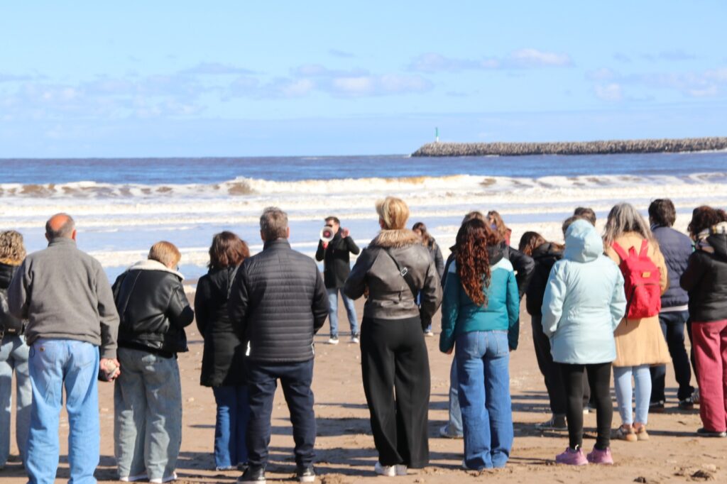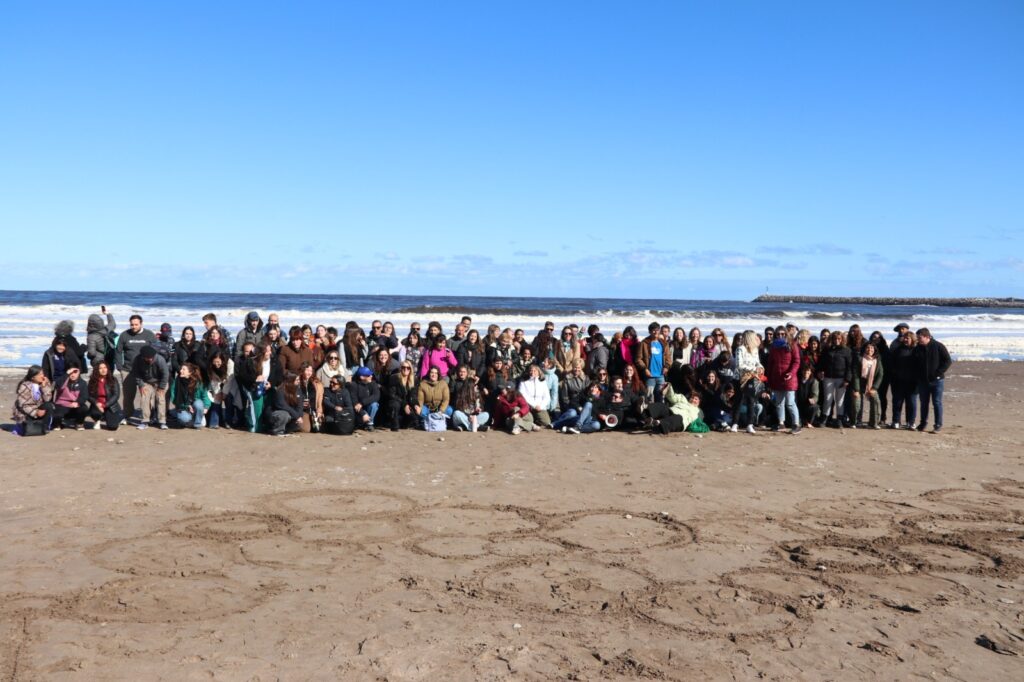 Luego los presentes se dirigieron a la playa, ubicada a dos cuadras del complejo universitario, para participar de una dinámica colectiva y hacer la foto grupal, como corolario de la jornada.