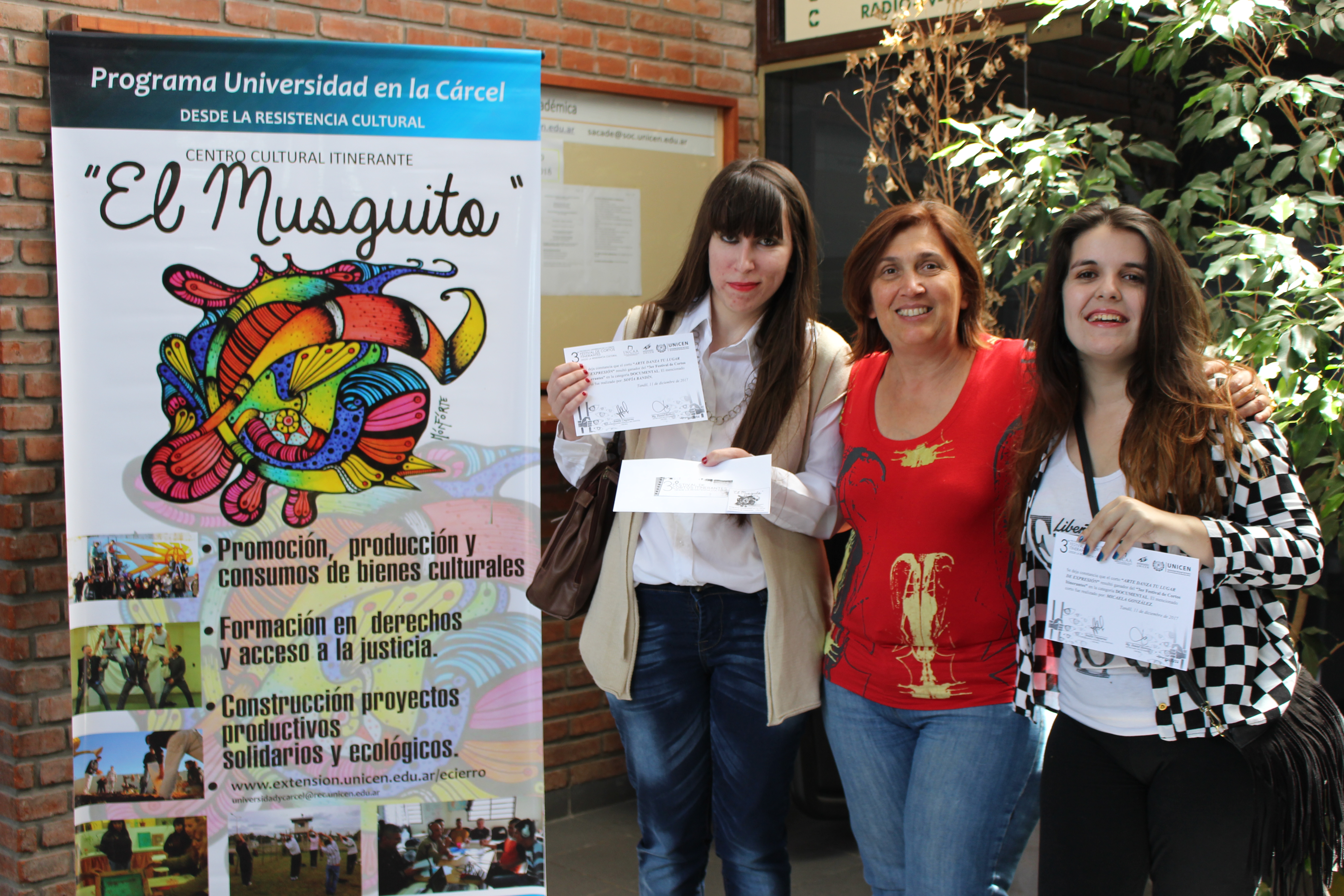 Los realizadores de los cortos ganadores del 3° Festival de Cortos Itinerantes que se desplegó en las Unidades Penales de Azul y Sierra Chica recibieron su premio. Dicho festival es una realización del Centro Cultural El Musguito, del Programa Universidad en la Cárcel, de la Secretaría de Extensión de rectorado, de la UNICEN.
