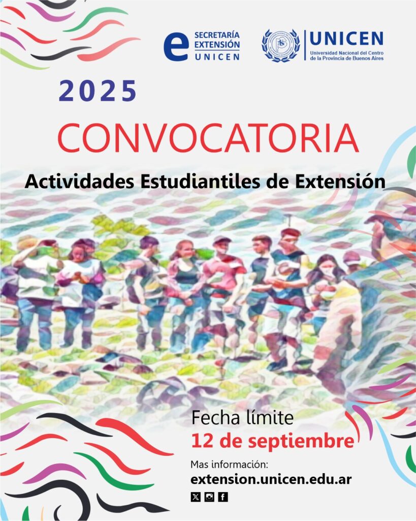 La Secretaría de Extensión de la Universidad Nacional del Centro de la Provincia de Buenos Aires (UNICEN) anuncia la apertura de la VI Convocatoria de Actividades Estudiantiles de Extensión, destinada a equipos de estudiantes que deseen desarrollar propuestas junto a organizaciones comunitarias de la región.