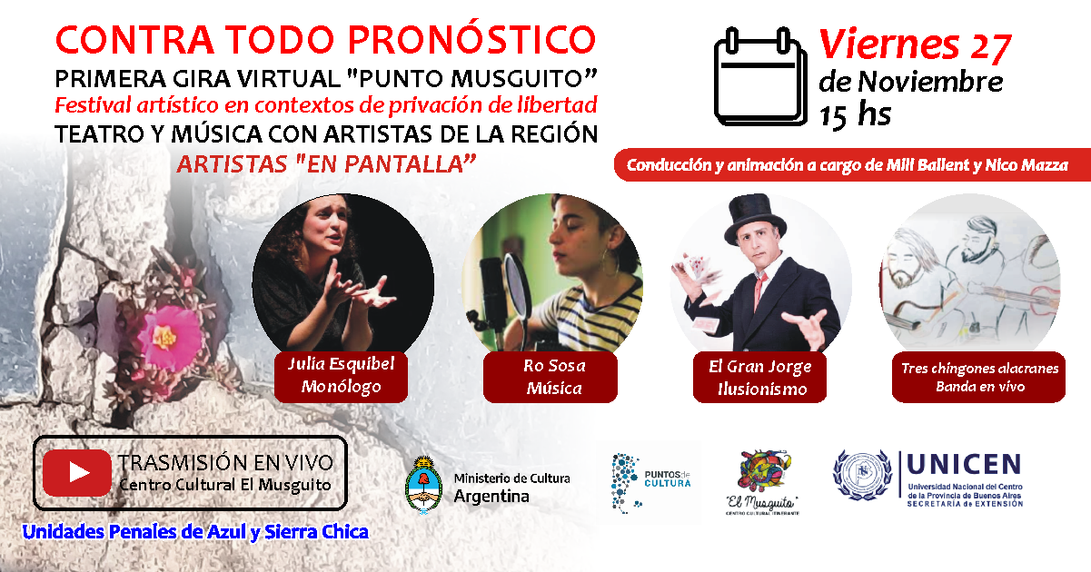 Para este fin de año la propuesta consiste en un festival artístico en formato virtual que tiene como principales destinatarios a estudiantes y participantes de actividades y talleres que ofrece la UNICEN en las cárceles de la zona centro de la provincia y se hace extensivo a la población detenida, ya que podrá ser visualizado por el canal de Youtube de dicho centro cultural itinerante.